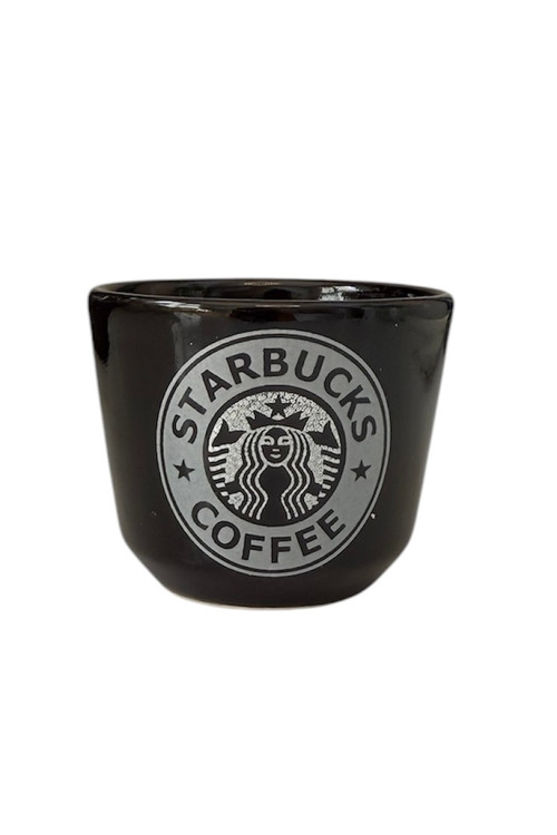 شات سرامیکی دستساز قهوه تک با طرح استارباکس نقره ای دستساز و خاص این دستسازه دسته ندارد و بسیار خوش دست و کم جاست. طرح روی شات نقره ای است و ثابت است قابل شستشو است و برای مصرف روزانه مناسب است.