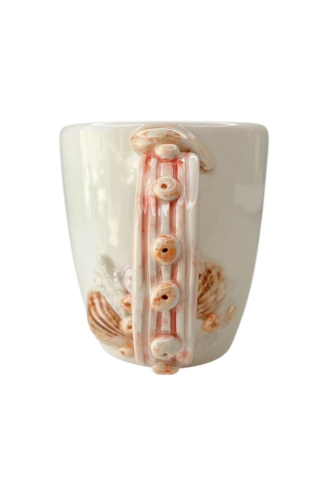 ماگ سرامیکی اقیانوسی با طراحی ویژه صدف و مرجان دریایی در ناحیه دسته ماگ می باشد. دسته ماگ حالت پای اختاپوس را دارد و بسیار جذاب است. مناسب انواع نوشیدنی است.