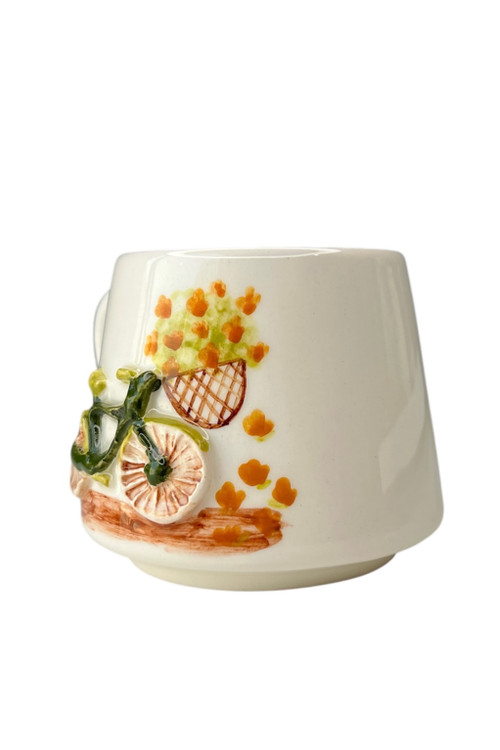 طرح دوچرخه یک طرح خاص و منحصر به فرد در تولیدی آرسرام می باشد که این دوچرخه طراحی برجسته ای دارد و قابل مشاهده و لمس است. نقاشی زیرلعابی در اجرای کامل کار کمک شایانی کرده است، ماگ براق و زیبا و بسیار خوش دست می باشد.